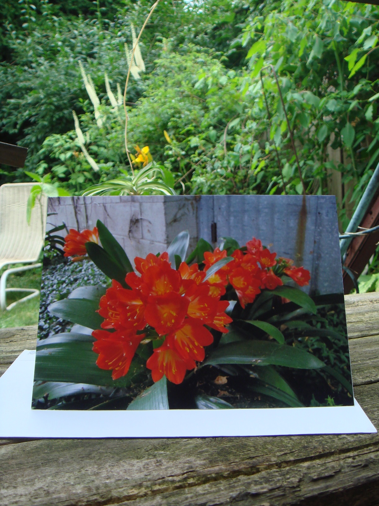 Yesterday at Harbourfront, Judith gave me an envelope. Later at home I opened it and inside was a photo taken earlier that day of her clivia plant. Judith said when the clivia is in bloom she always thinks of my Mom. The card was such a lovely way to mark the occasion of the “Tribute to Jean”.